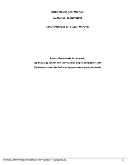 Για να κατεβάσετε τις Χρηματοοικονομικές Καταστάσεις του 2018 πατήστε εδώ
