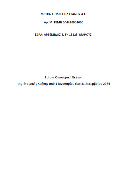 ΜΕΤΚΑ ΑΙΟΛΙΚΑ ΠΛΑΤΑΝΟΥ Α.Ε.